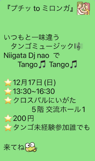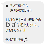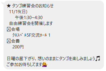 タンゴ練習会とミロンガのお知らせ 2023年11月13日 |